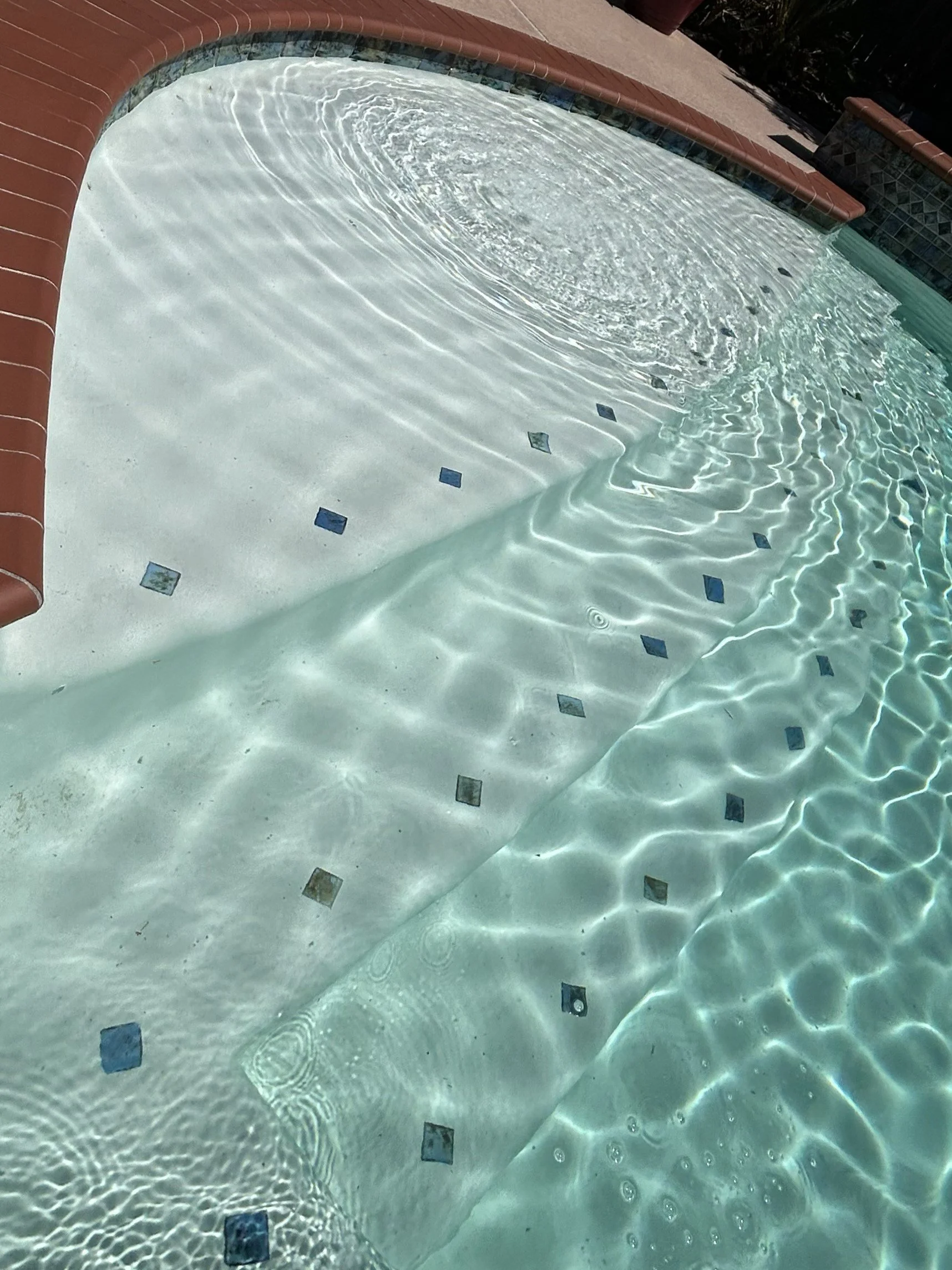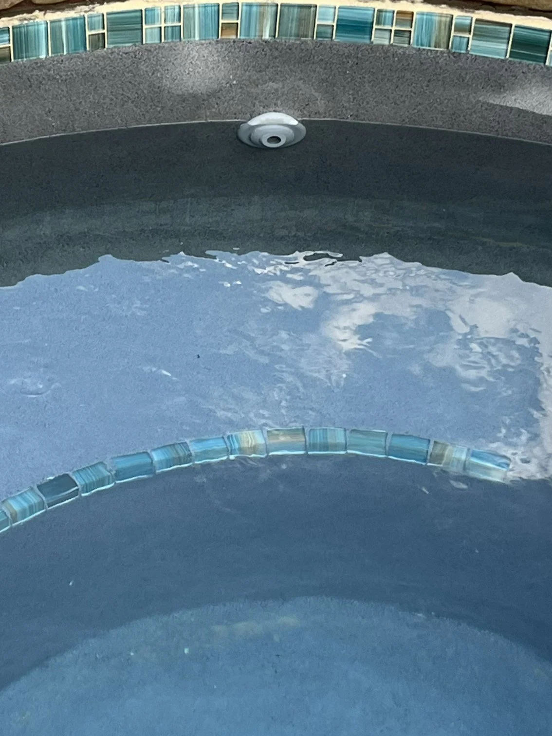 Abrasion Blasting: We used specialized media blasting to safely strip away years of calcium buildup and stains from the water line tile and coping, revealing the original color underneath.
