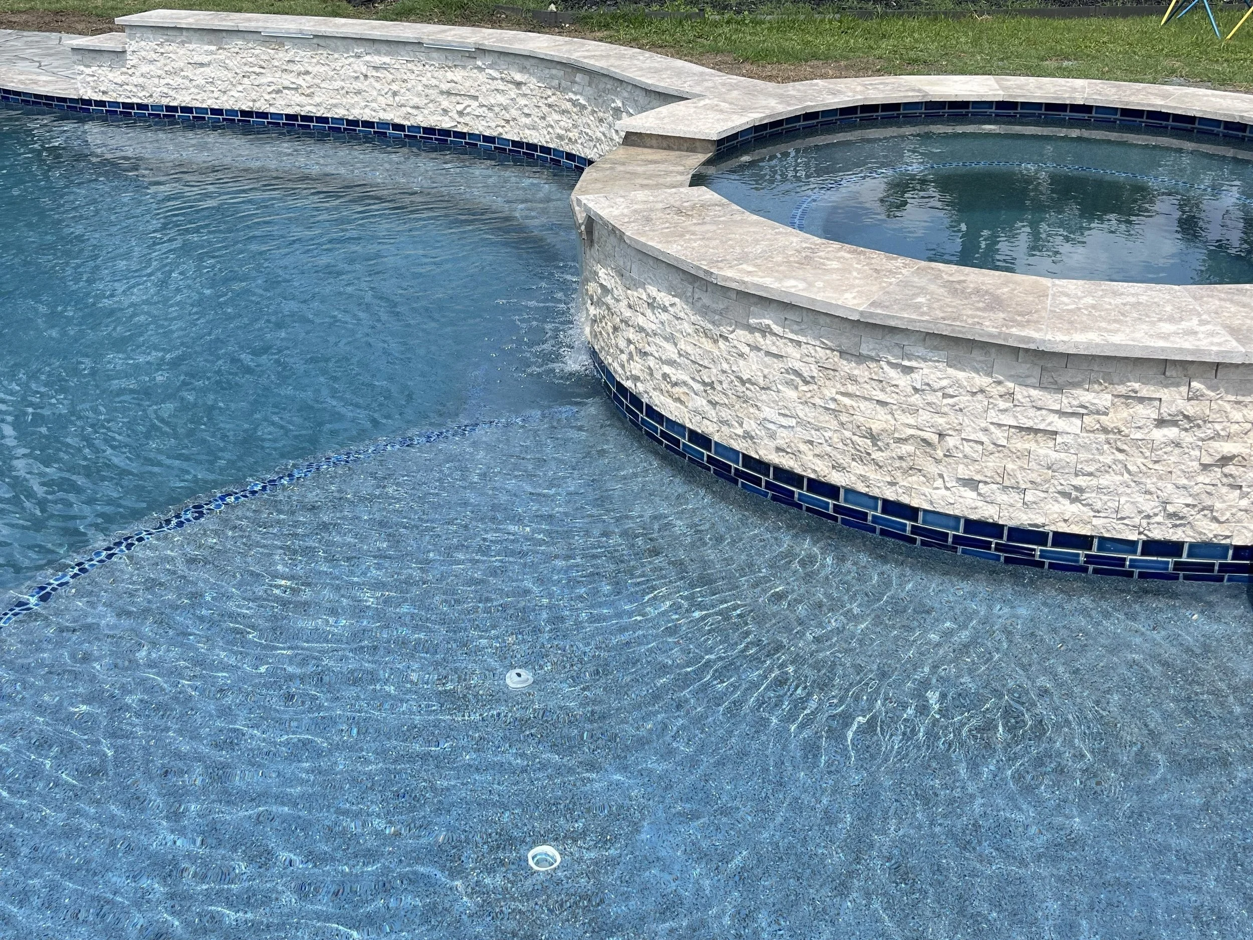 We designed and constructed this backyard oasis from the ground up, focusing on a high-contrast, "cool-toned" aesthetic. This project showcases how premium stone and advanced plaster finishes can turn a new pool into a permanent vacation spot.